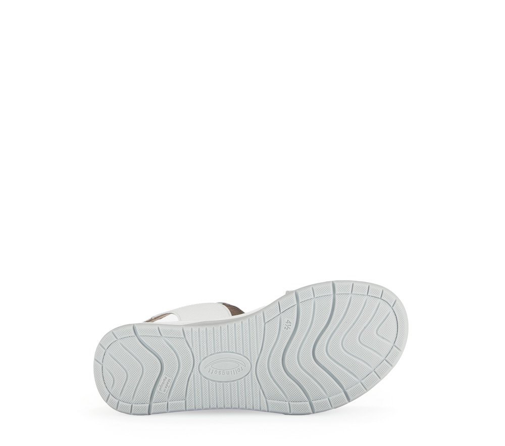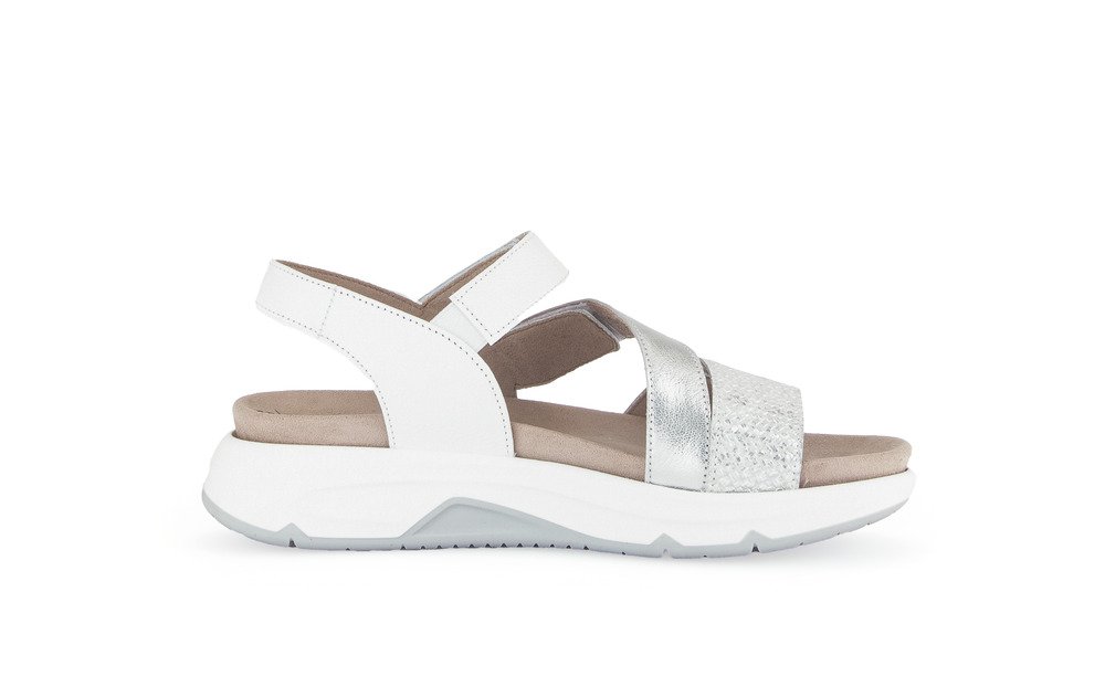 Deze witte sandaal met zilveren accent biedt je comfort en kan je dankzij de neutrale kleuren onder heel wat zomerse outfits dragen. Het voetbed is uitneembaar en kan gewassen worden op 30°. De drie velcrobanden zorgen ervoor dat de sandaal mooi aansluit aan de voet.