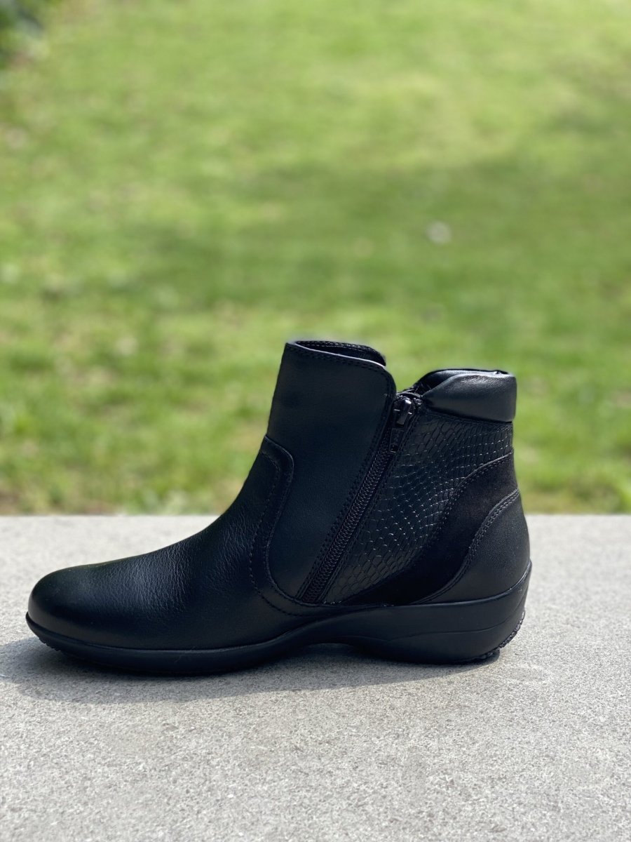 Deze zwarte enkellaarsjes van Helioform zijn voorzien van twee ritssluitingen, dit biedt extra comfort. Niet alleen voor mensen met een zwaardere voet, ook zij die niet makkelijk kunnen bukken zijn hier goed mee geholpen. Heb je snel last van koude voeten? Deze Helioform laarsjes zijn afgewerkt met een zachte fleece-laag binnenin zodat je de winter doorkomt met warme voeten!