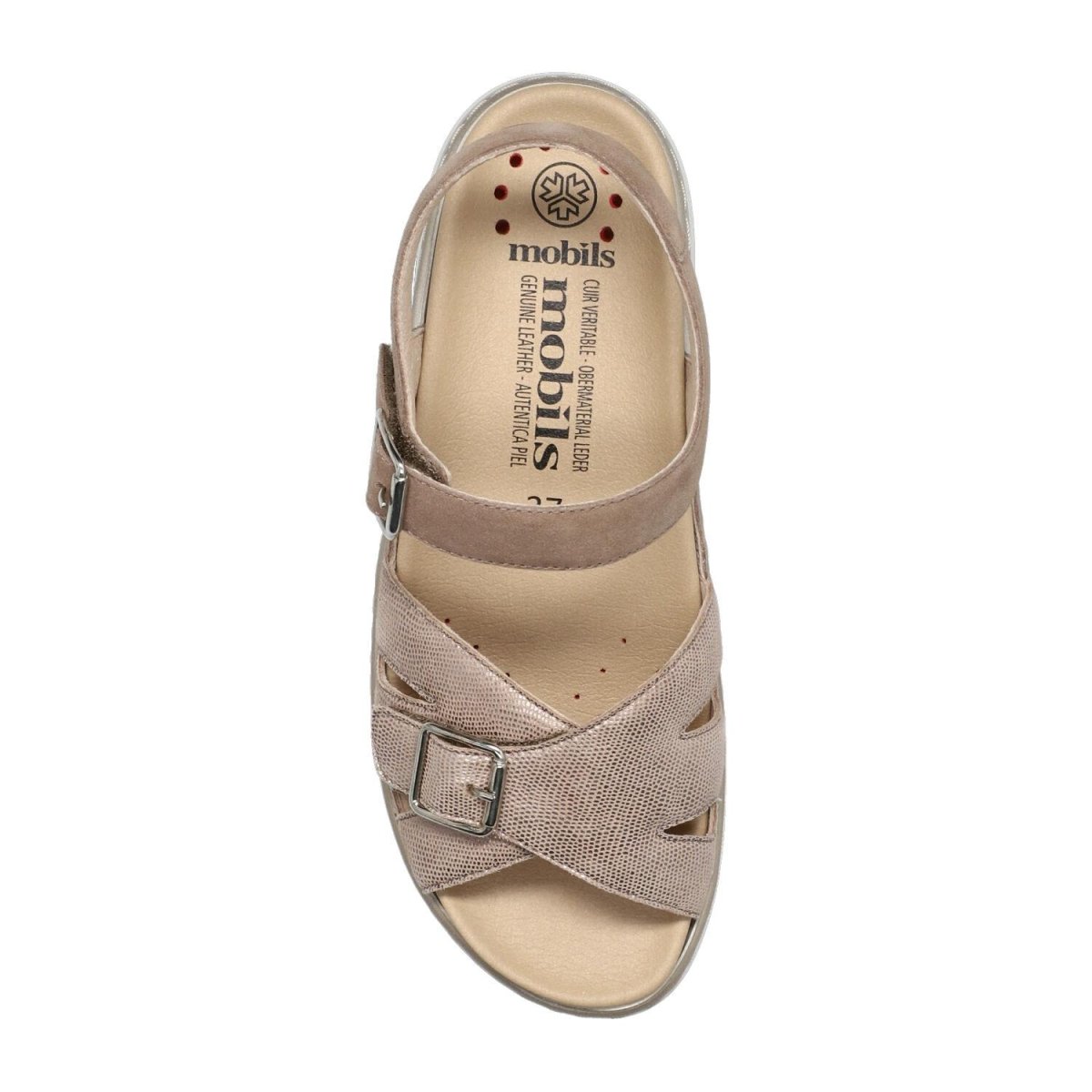 Deze klassieke Mephisto Mobils sandaal past onder elke zomerse outfit. De taupe kleur maakt het mogelijk om de sandaal te dragen onder elke kleur. Je kan de sandaal verstellen dankzij de twee velcrosluitingen onder de gespen. Deze sandaal heeft een anatomisch gevormd voetbed dat bovendien uitneembaar is. Het voetbed dempt schokken en ondersteunt de natuurlijke afwikkeling van de voet. In de hiel van de sandaal is de Shock Absorber verwerkt, zodat je rug wordt ontzien. De witte zolen van de Mobils schoenen zijn gemaakt van 100% natuurlijk rubber. De sandaal is ideaal voor mensen met een bredere voorvoet.
