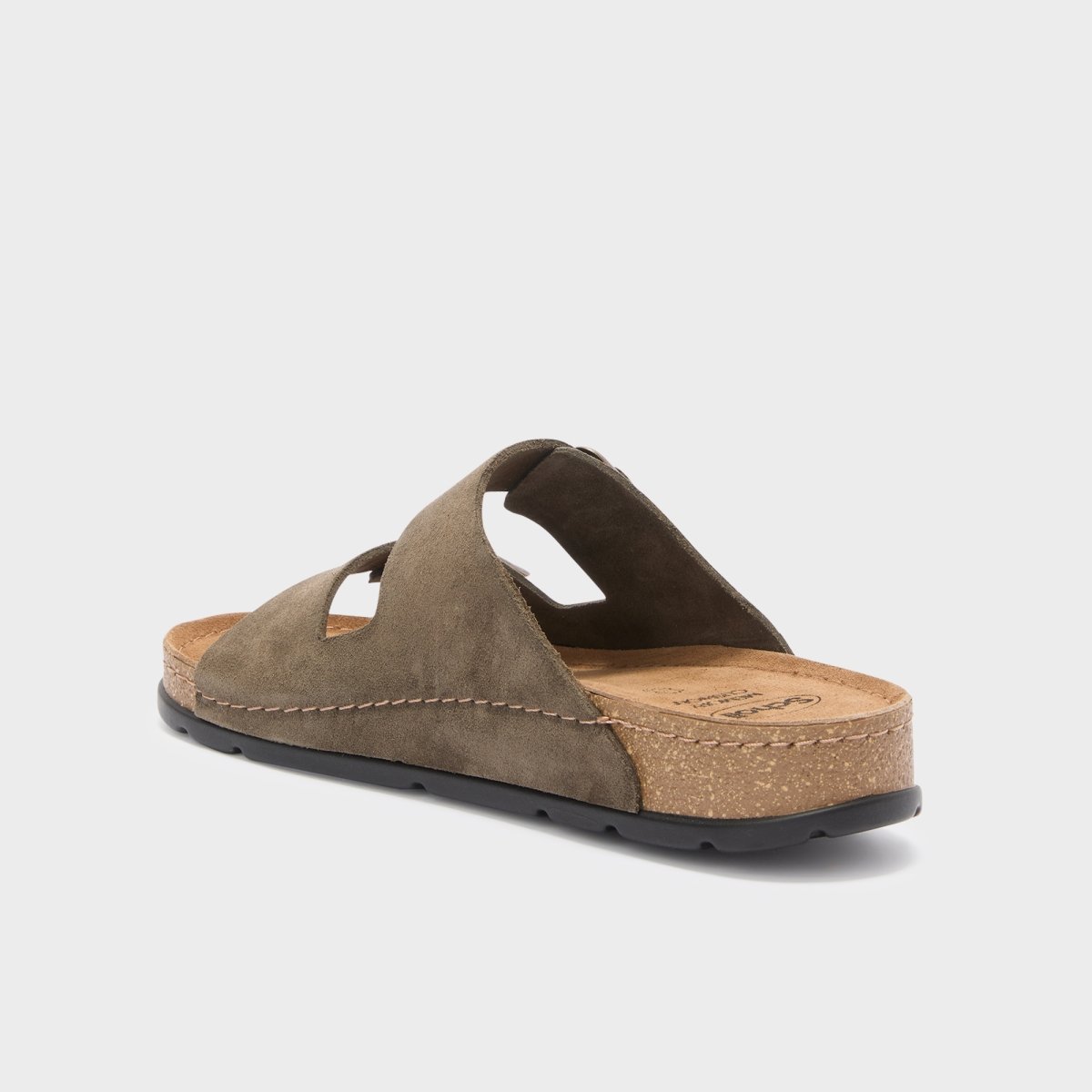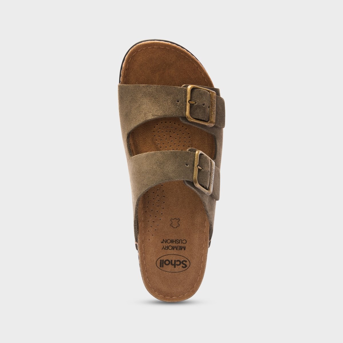 Loop je liever niet te plat en ben je op zoek naar een slipper met een voorgevormd anatomisch voetbed? Dan kan deze khaki-kleurige Scholl slipper met memory cushion wel eens iets voor jou zijn! Het memory cushion zorgt voor een optimale drukverdeling over uw voetzool, wat pijn en vermoeidheid vermindert. Je merkt het verschil bij elke stap! De twee suède banden zijn gemakkelijk verstelbaar dankzij de gesp.