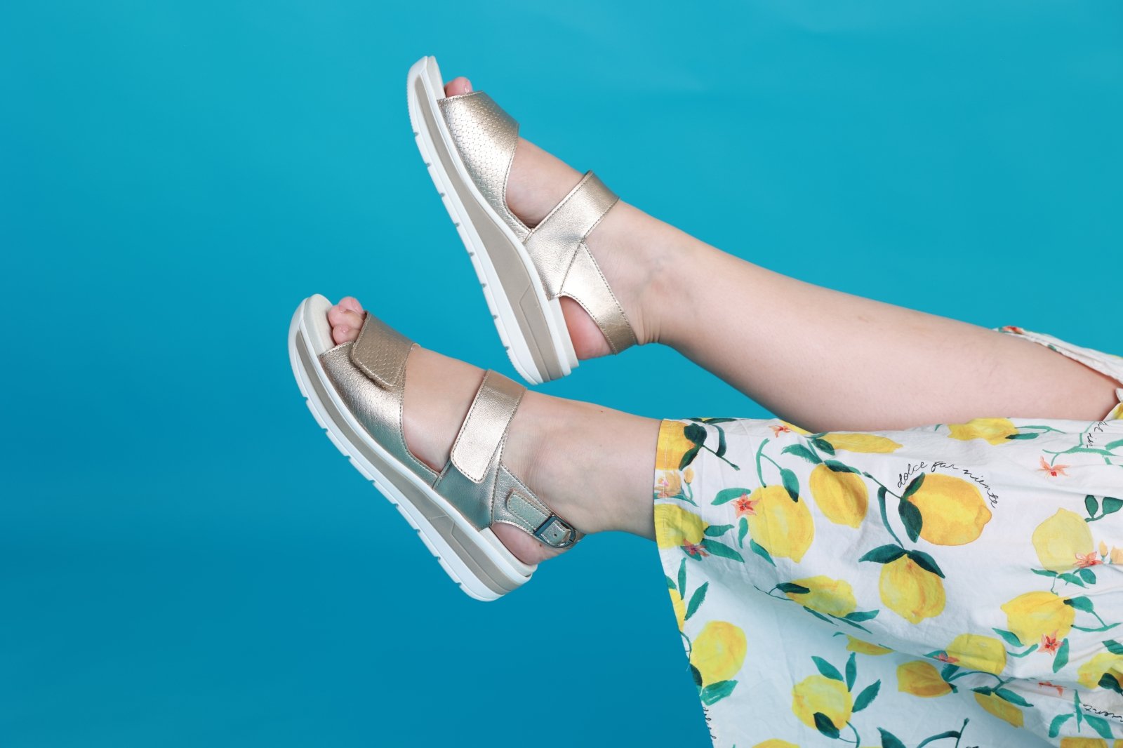 Op zoek naar comfortabele slippers gemaakt voor jouw voeten? Het kan met onze Solidus schoenen! De gouden sandaal is afgewerkt met twee klittenbanden voor de perfecte passing aan de voet. Het is een echte musthave voor de zomer!