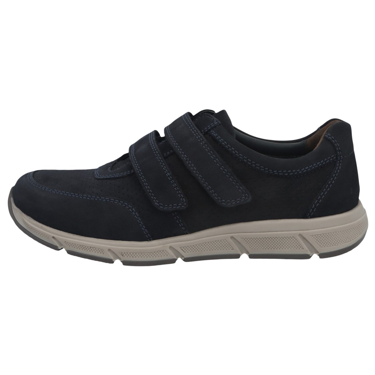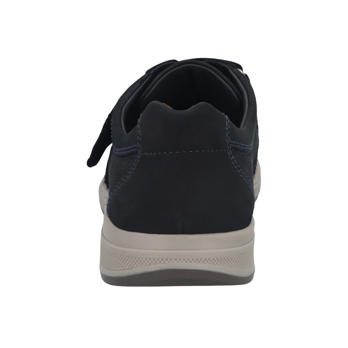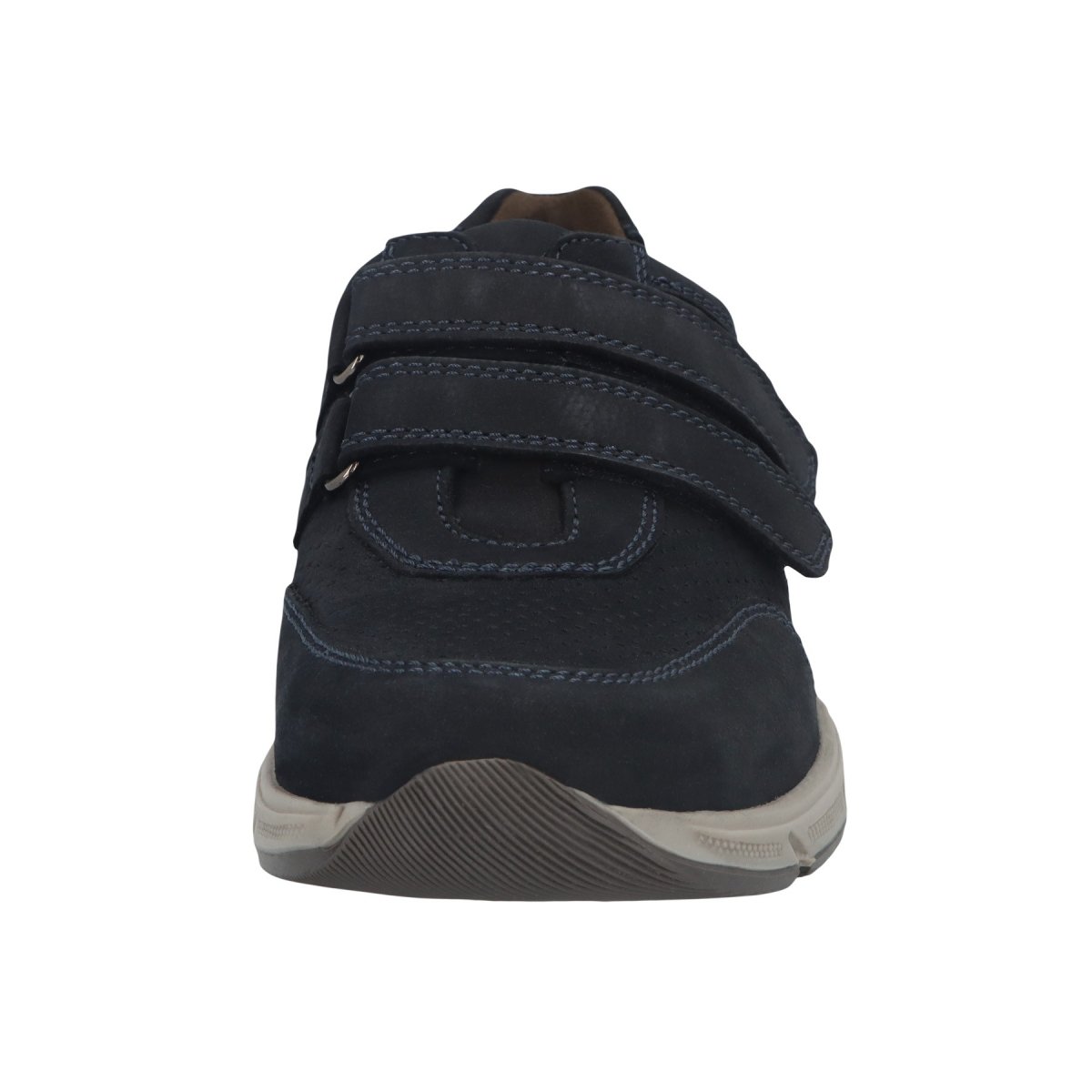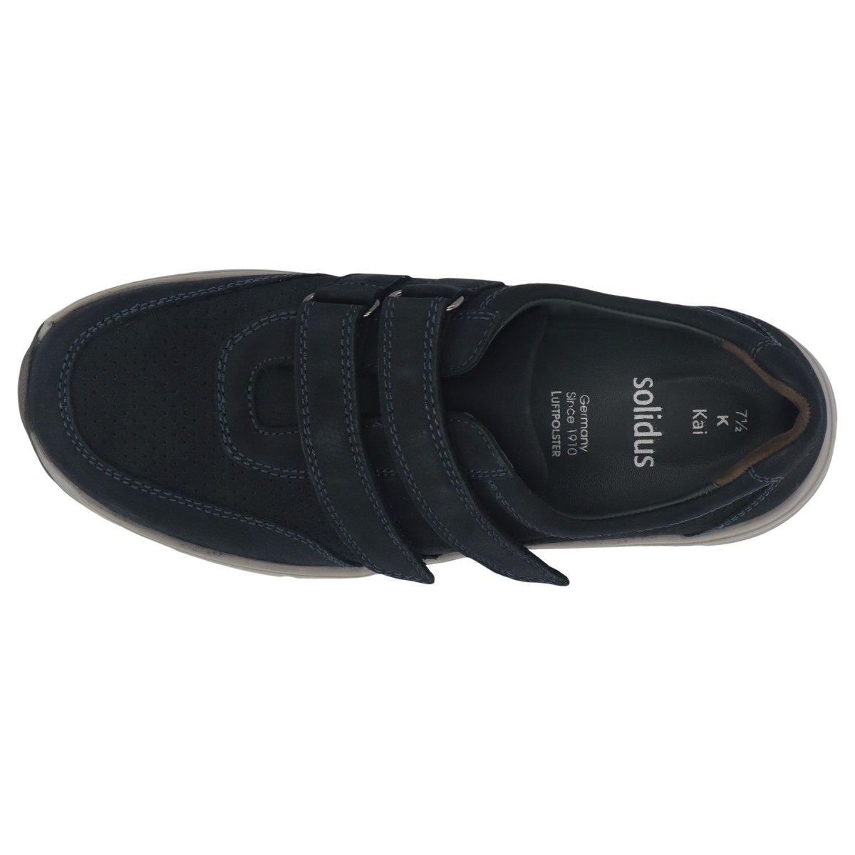 Geen tijd verlies met veters binden dankzij deze sportieve Solidus schoen met dubbele velcrosluiting. De zolen zijn licht grijs en de bovenzijde is gemaakt van donkerblauw nubuck leer.