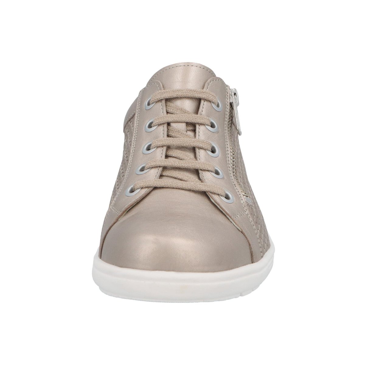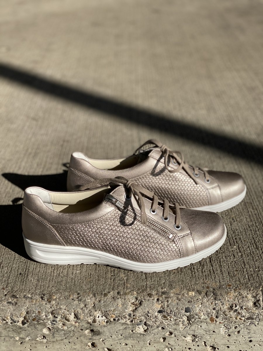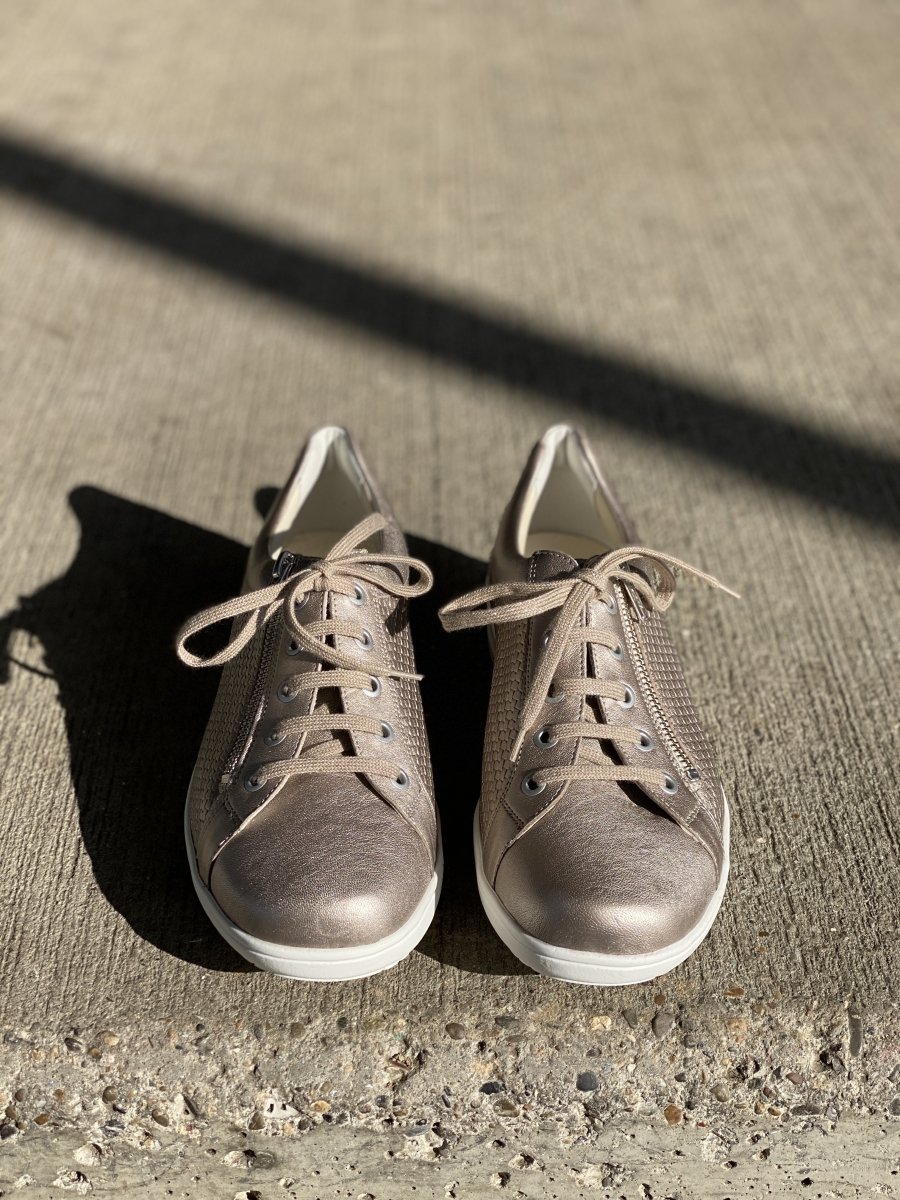 Champagne kleur is een kleur die je onder elke outfit kan combineren. Het is een klassieker model met een rits- en vetersluiting. Dankzij de derby sluiting past een voet met een hoge wreef perfect in de schoen.