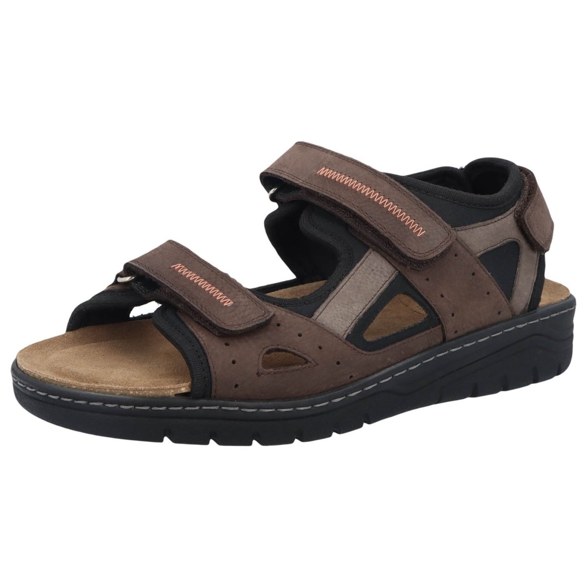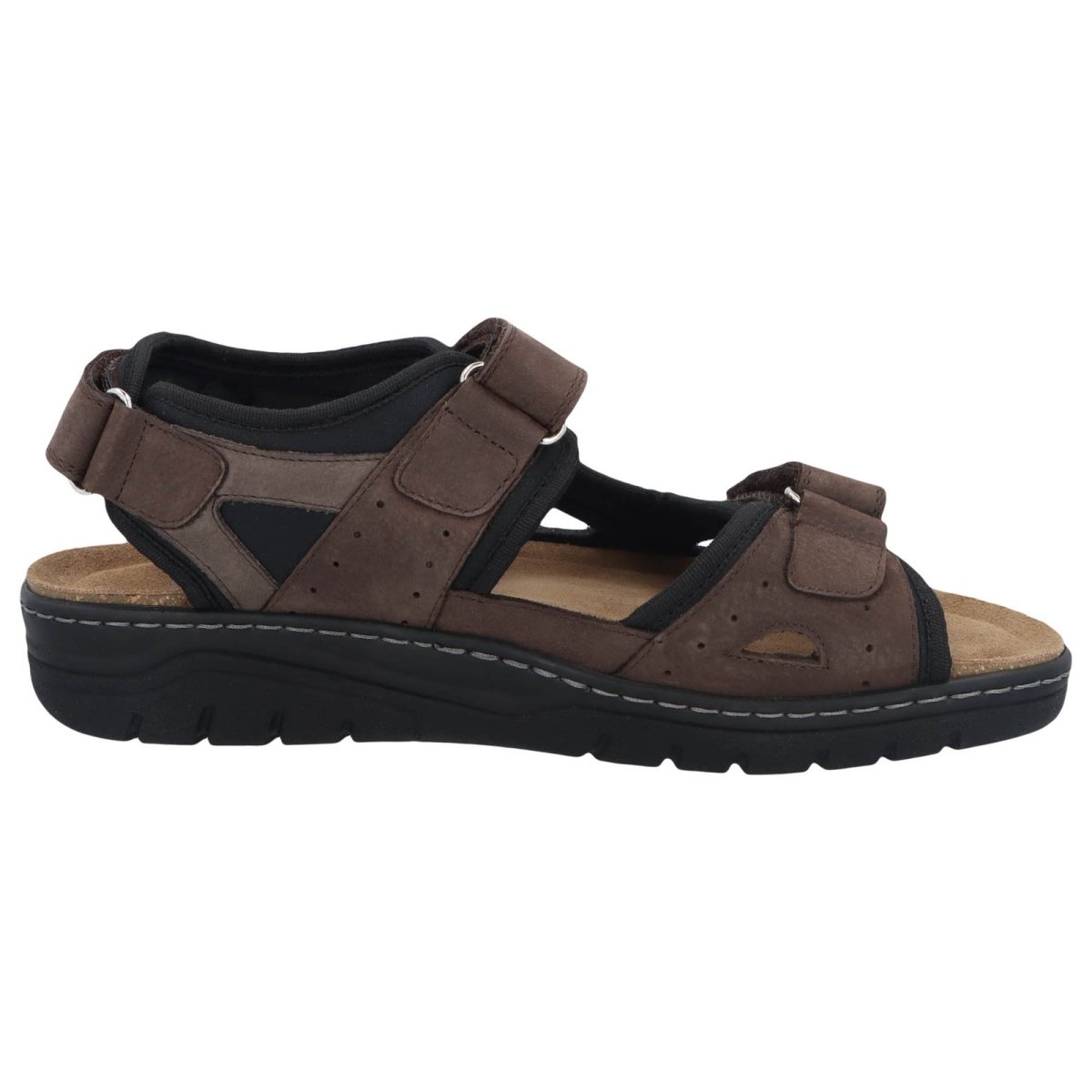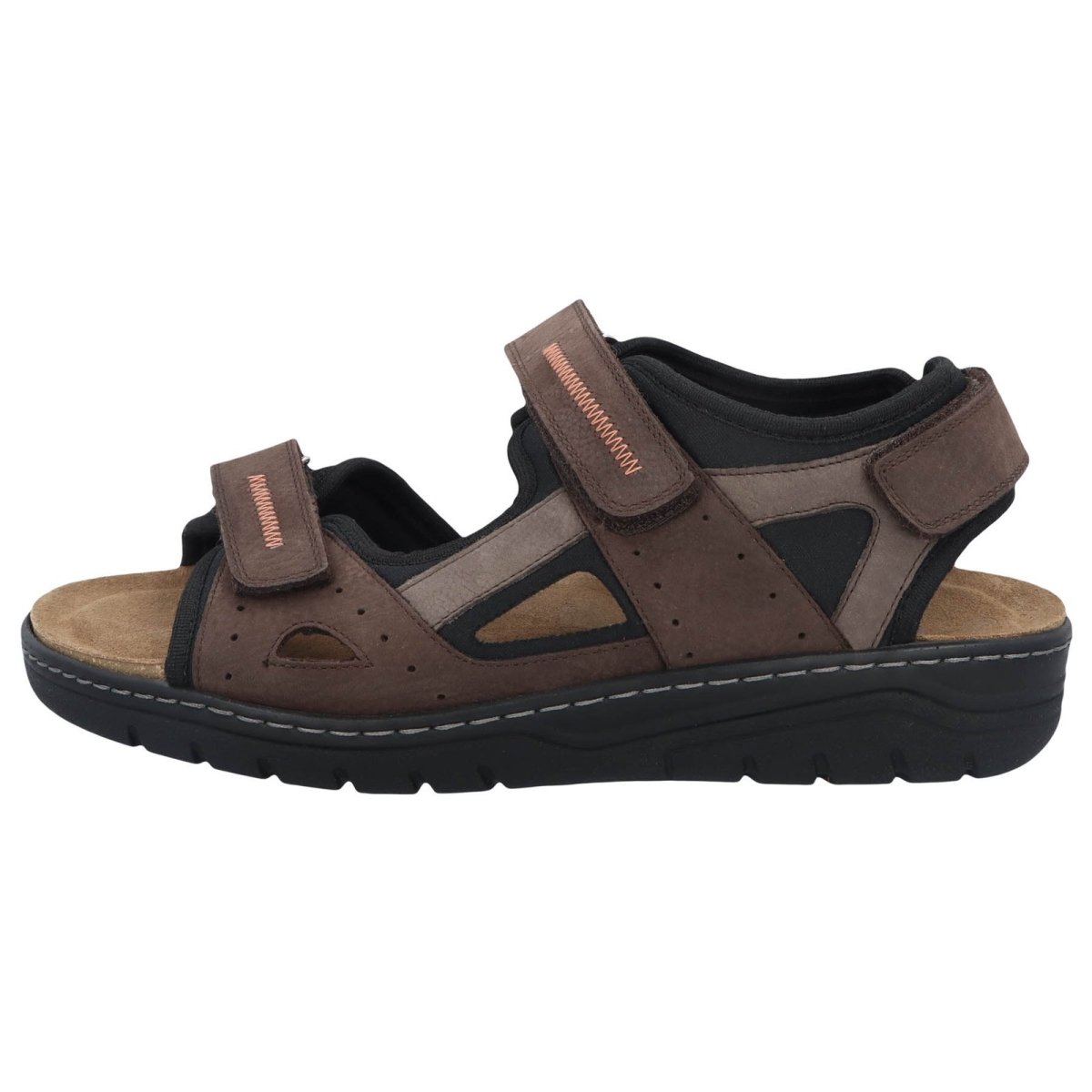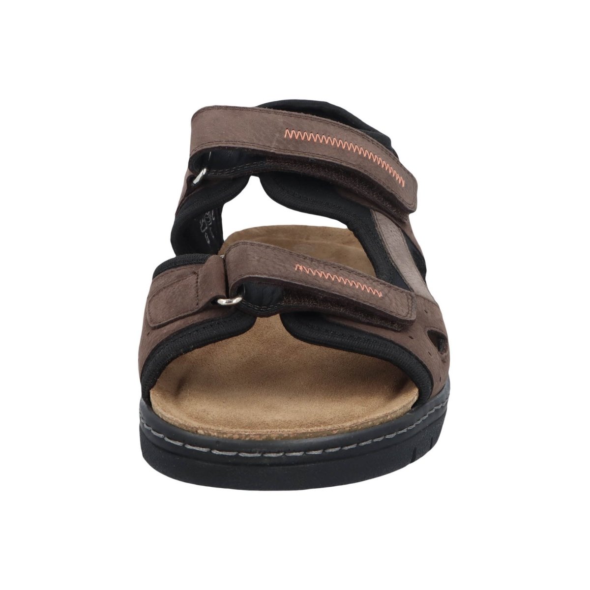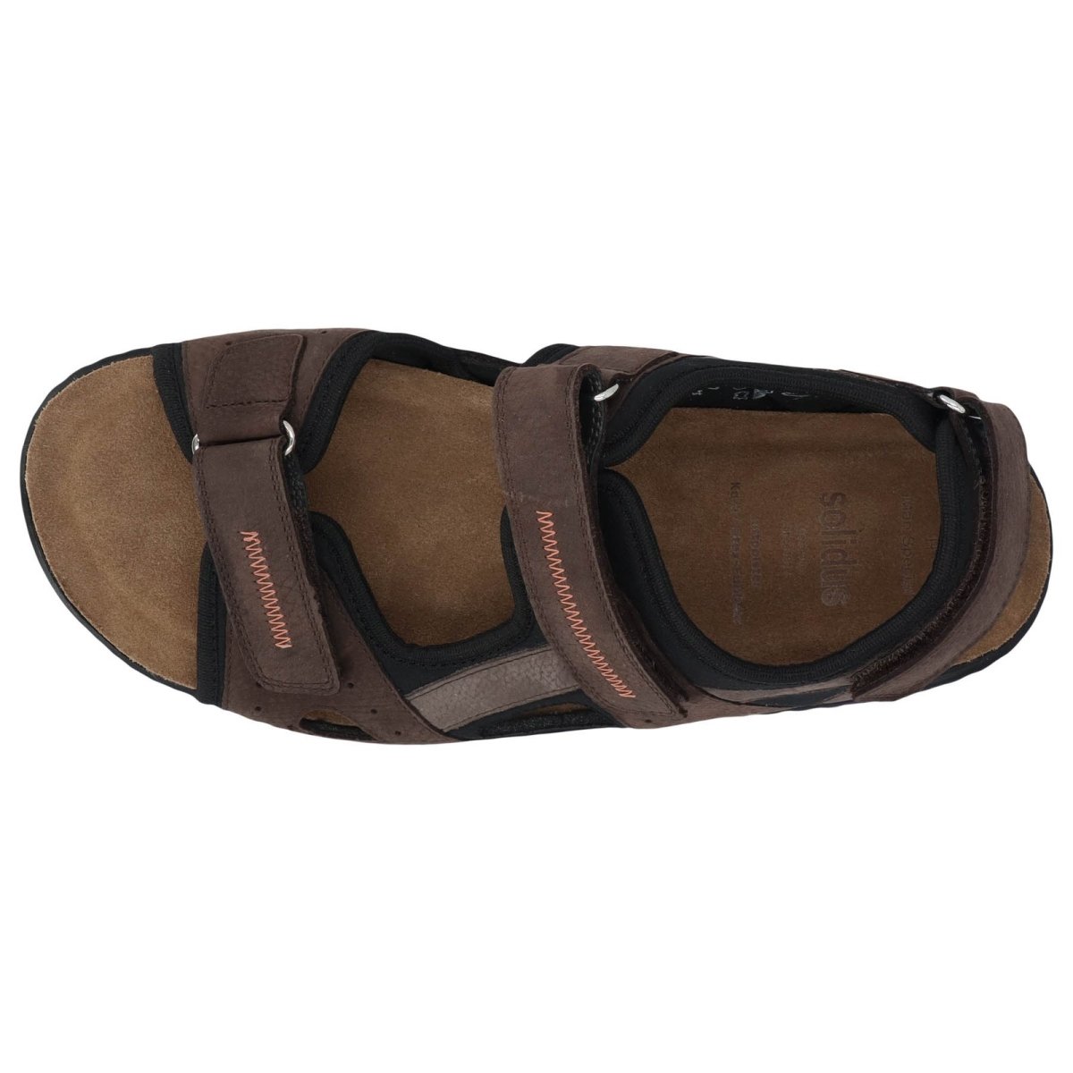Rhino, de sportieve comfortabele mannensandaal van Solidus. De drie klittenbanden zorgen ervoor dat de schoen perfect kan aangepast worden aan jouw voet. Het voetbed is uitermate zacht, zodat je er lange wandelingen op kan maken. Ook in deze sandaal kan je het voetbed verwisselen met je eigen steunzolen. De sandaal met bruin en grijs leder is ook afgewerkt met zwarte kunststof voor extra zachtheid aan de voet. Kortom, een echte comfortsandaal!