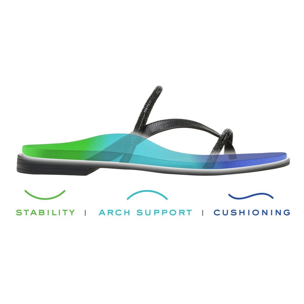 Model Prism staat voor elegantie, vrouwelijkheid én comfort. Jawel, het kan gecombineerd worden. Het orthopedische voetbed vangt schokken op tijdens het stappen, waardoor je rug en knieën minder belast worden. De zwarte diamantjes en lederen riem zorgen voor de vrouwelijkheid die deze teenslipper kenmerkt.
