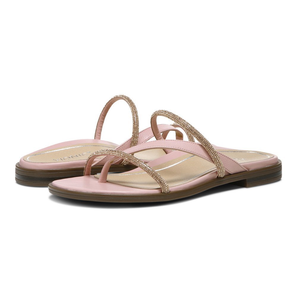 Model Prism staat voor elegantie, vrouwelijkheid én comfort. Jawel, het kan gecombineerd worden. Het orthopedische voetbed vangt schokken op tijdens het stappen, waardoor je rug en knieën minder belast worden. De diamantjes en roze lederen riem zorgen voor de vrouwelijkheid die deze teenslipper kenmerkt.