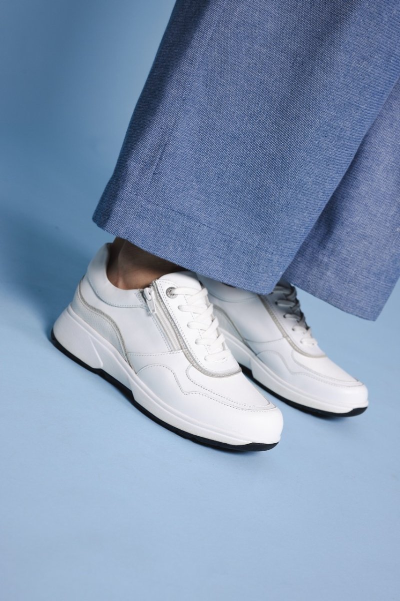 Deze witte Xsensible sneaker met zilveren accenten mag niet ontbreken in je schoenenkast. Wit combineer je gemakkelijk onder eender welke outfit. De schoen is perfect voor een actieve dag, zonder in te leveren op stijl.